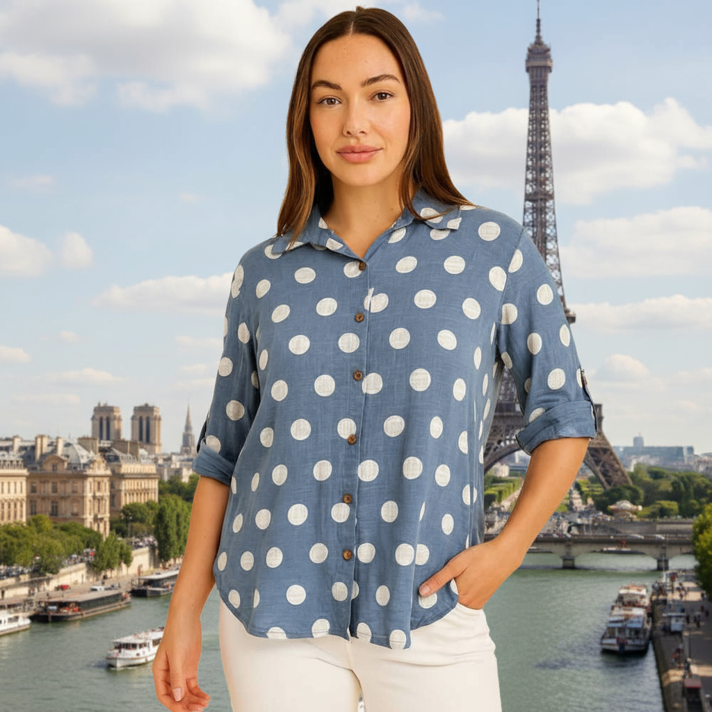 Spotted Roll Sleeve Shirt - Denim
