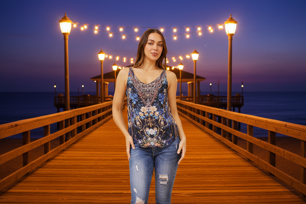 Elevate your casual wardrobe with this refined printed singlet in classic black. The sophisticated design offers versatile styling for warm weather, seamlessly transitioning from weekend outings to relaxed evenings. Crafted for comfort and durability, this essential piece pairs effortlessly with tailored shorts, linen trousers, or layered under lightweight jackets. A timeless addition to any modern wardrobe.