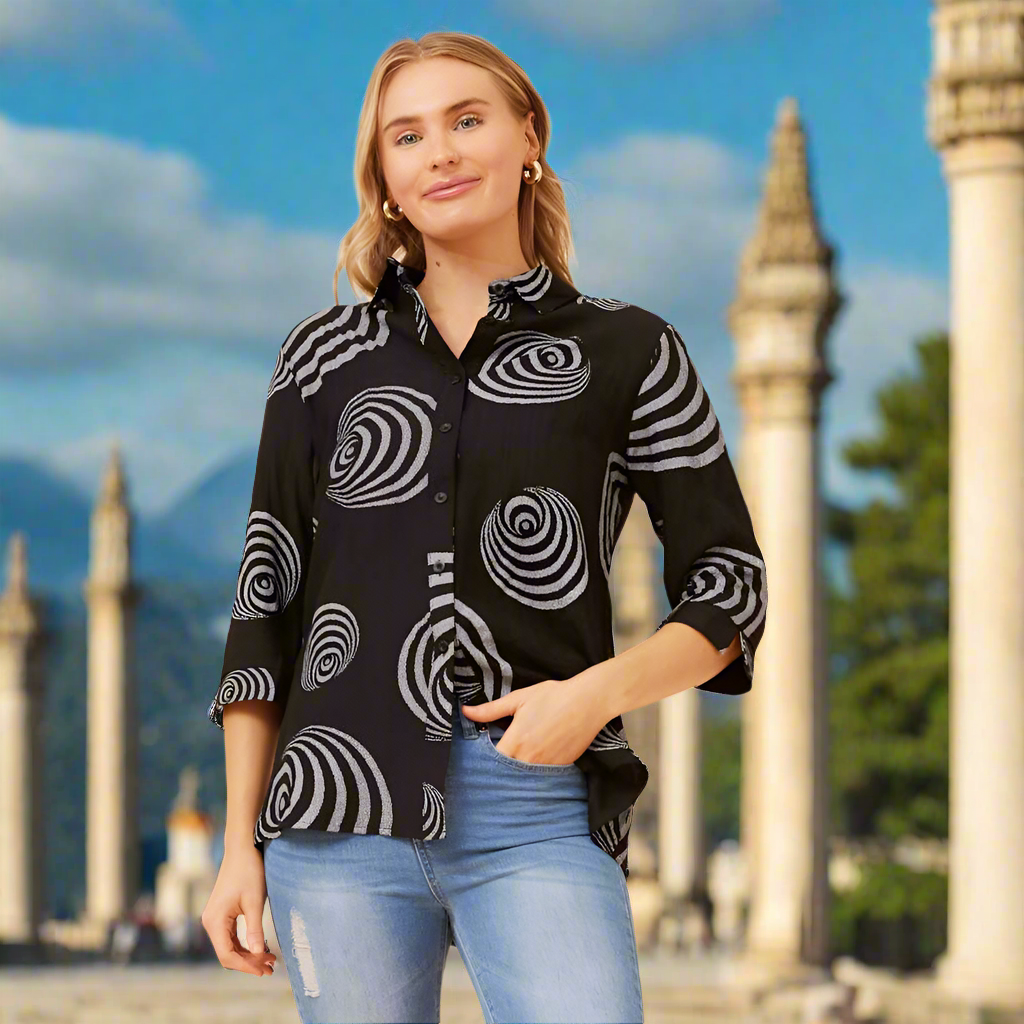 Add a stylish twist to your vacay wardrobe with the shirt. Style it with jeans and sneakers for a casual day look, or tuck it into trousers and pair it with heeled boots for an effortless, transeasonal work look.