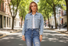 Elevate your denim collection with this refined printed denim jacket. Crafted from classic denim fabric, it features an eye-catching print that adds contemporary flair to timeless style. The structured silhouette offers versatility for layering over casual or smart-casual outfits, while the durable construction ensures lasting wear. Perfect for transitional seasons, this jacket seamlessly bridges the gap between understated elegance and fashion-forward design.