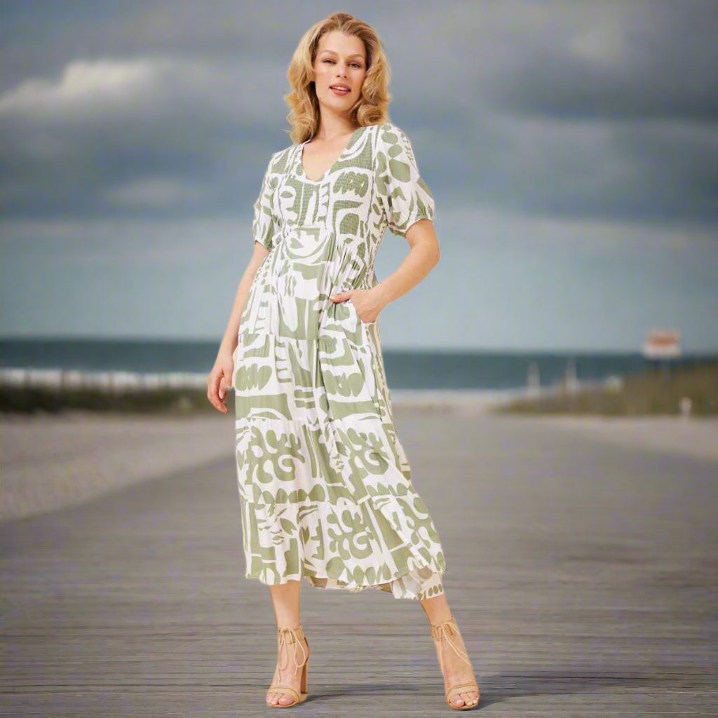 Stay comfortable and chic in our maxi dress, perfect for your next day out in the city. Pair it with sandals or wedges for an effortless and relaxed look that’s both stylish and easygoing.