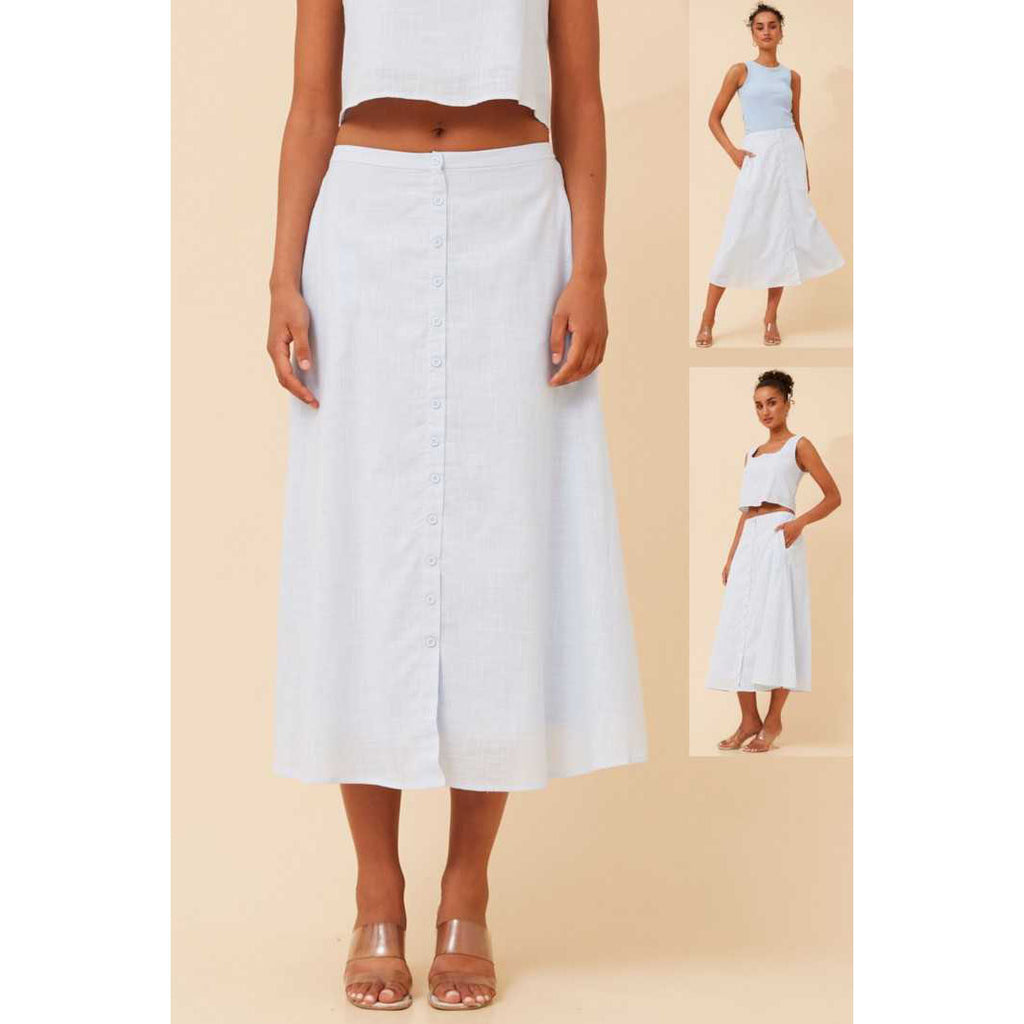 Midi Button Front Skirt - Sky Blue