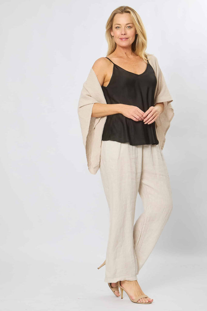Elevate your wardrobe with this refined bolero, crafted from a luxurious blend of 90% cotton and 10% linen. The natural fibre composition offers breathable comfort with subtle texture, while the neutral fango tone provides versatile styling possibilities. Perfect for layering over dresses or pairing with tailored pieces, this sophisticated piece transitions effortlessly from day to evening wear. The linen addition ensures a graceful drape and gentle movement, making it an essential addition to any discerning wardrobe.