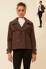 Elevate your workwear with this sophisticated button front blazer in rich chocolate flannel. The tailored silhouette features distinctive cuff detailing that adds a contemporary edge to classic styling. Perfect for the office or weekend dressing, this versatile piece layers effortlessly over dresses, shirts, and knitwear. The structured fabric holds its shape beautifully while remaining comfortable for all-day wear. A timeless investment piece that transitions seamlessly across seasons.