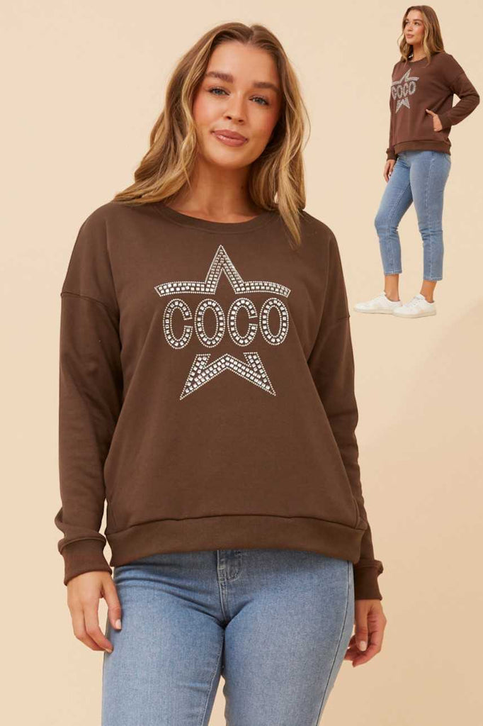 Effortless comfort meets everyday style with the Coco Star Long Sleeve Jumper in rich chocolate. Crafted from a cotton-polyester blend, this versatile piece offers the breathability of natural fibres with added durability and easy care. The relaxed fit and long sleeves make it perfect for layering or wearing solo through cooler months. A wardrobe essential that transitions seamlessly from casual weekends to relaxed workdays.