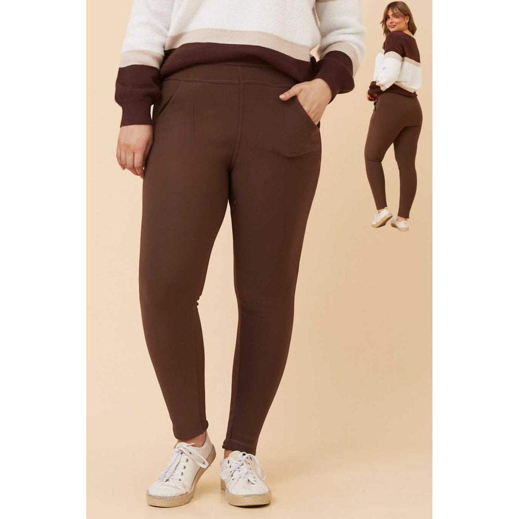 Fleece Lined Legging With Pockets - Chocolate