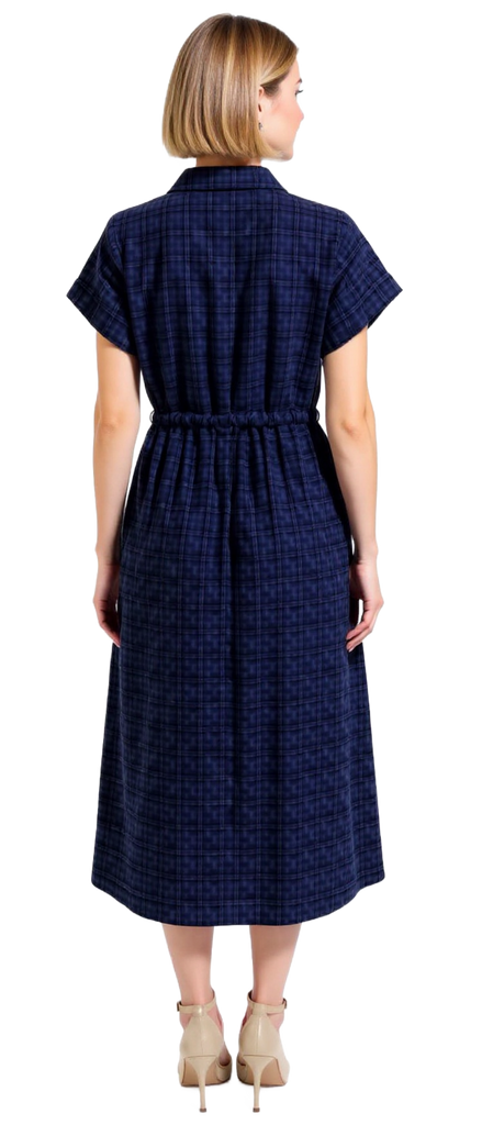 Elevate your everyday wardrobe with this refined café latte dress, featuring a sophisticated self-check textured fabric that adds subtle visual interest. The adjustable drawstring waist creates a flattering silhouette, while the classic collar and short sleeves deliver timeless elegance. Practical front pockets and finished sleeve cuffs complete this versatile piece, perfect for transitioning seamlessly from day to evening occasions.