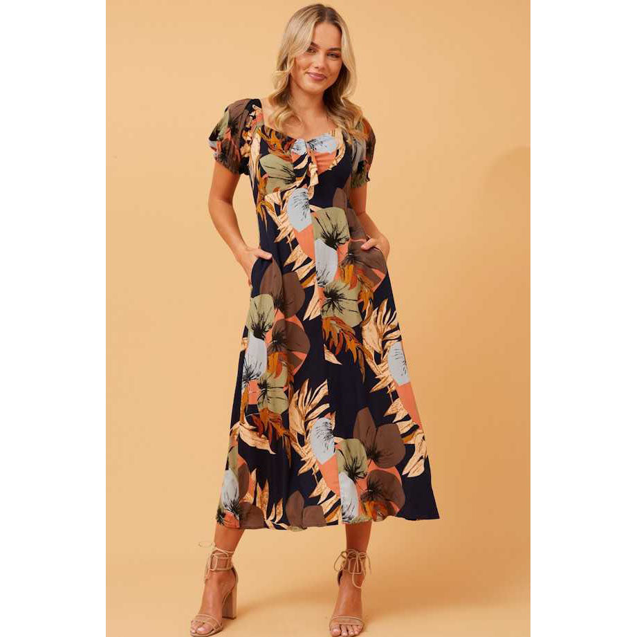 With a stunning tropical print, this dress is ideal for your next holiday! Match it with roman sandals or flats for an effortless and stylish look!